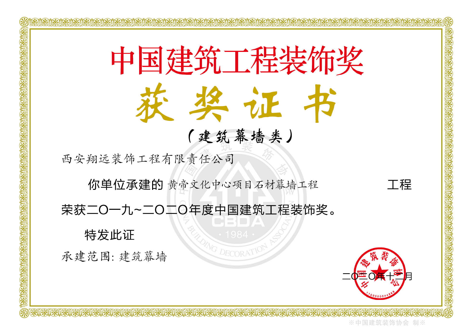 中國建筑工程裝飾獎(jiǎng)(原名全國建筑工程裝飾獎(jiǎng),簡稱“裝飾獎(jiǎng)”)是根據(jù)建設(shè)部建辦200138號文和建設(shè)部辦公廳2002年7月9日的批復(fù)指示精神,由中國建筑裝飾協(xié)會(huì)主辦的評選活動(dòng)所頒獎(jiǎng)項(xiàng)。“裝飾獎(jiǎng)”的建筑裝飾工程是設(shè)計(jì)與施工完美結(jié)合,設(shè)計(jì)創(chuàng)意和施工工藝達(dá)到國內(nèi)先進(jìn)水平的裝飾精品,包括新建、改建、擴(kuò)建的各類公共建筑裝飾和建筑幕墻工程,與建筑室內(nèi)外裝飾密切相關(guān)的室外景觀與環(huán)境改造工程,以及我國企業(yè)在境外施工的工程。此獎(jiǎng)項(xiàng)作為建設(shè)部批準(zhǔn)設(shè)立的中國建筑裝飾行業(yè)的至高榮譽(yù)獎(jiǎng)。