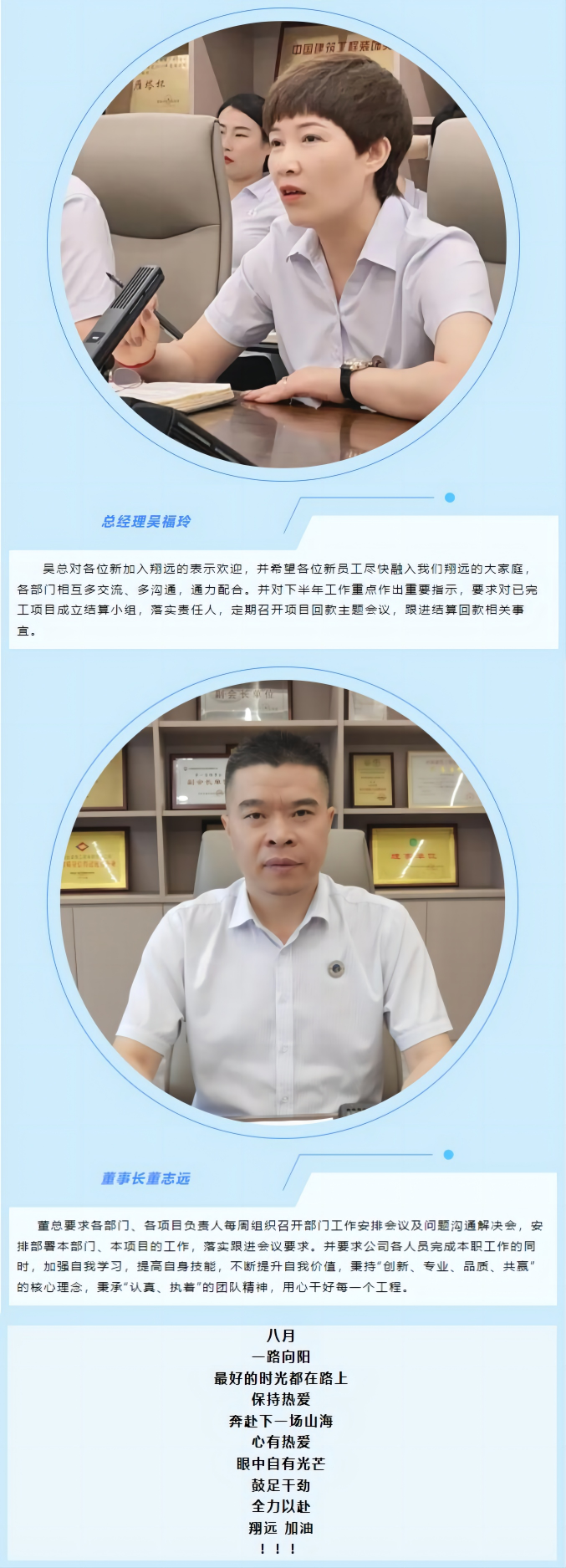 隨著公司的不斷發展,新起項目的進場,公司隊伍不斷壯大,新加入我們翔遠的伙伴們依次進行自我介紹,大家表示熱烈歡迎。